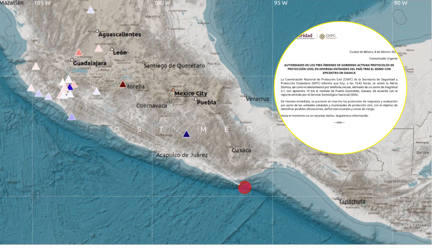 El movimiento telúrico tuvo una magnitud de 5.7, con epicentro ubicado a 19 kilómetros al noreste de Puerto Escondido, y se originó a una profundidad de 10 kilómetros, de acuerdo con el reporte preliminar del Servicio Sismológico Nacional.