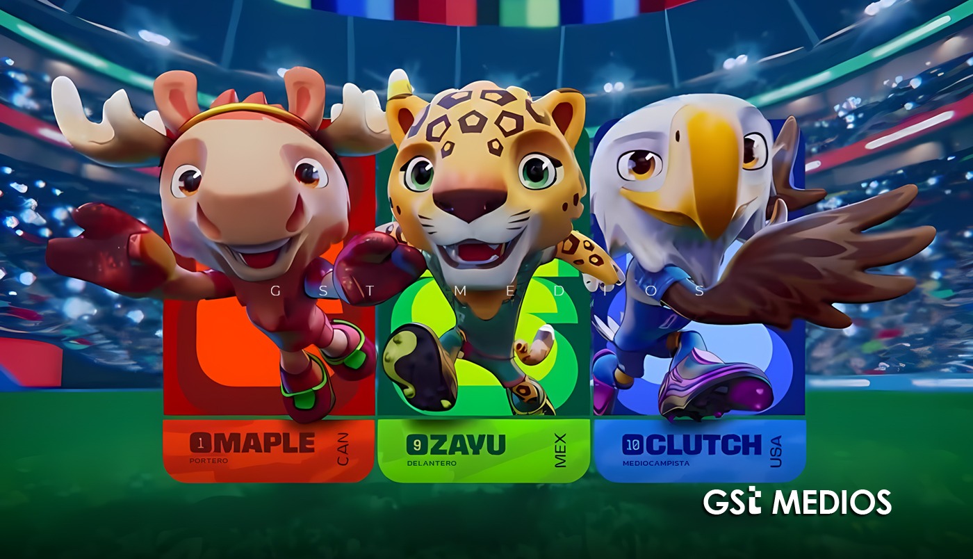 Presentan a las mascotas del Mundial 2026, se trata de Zayu, el jaguar delantero que representa a México, Clutch, la…